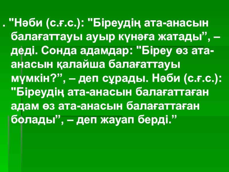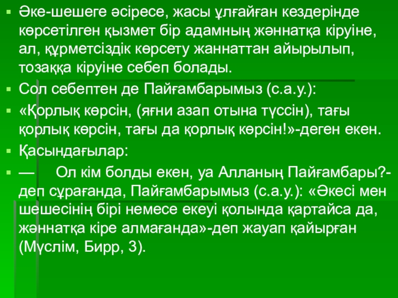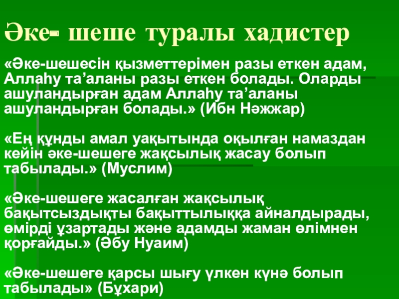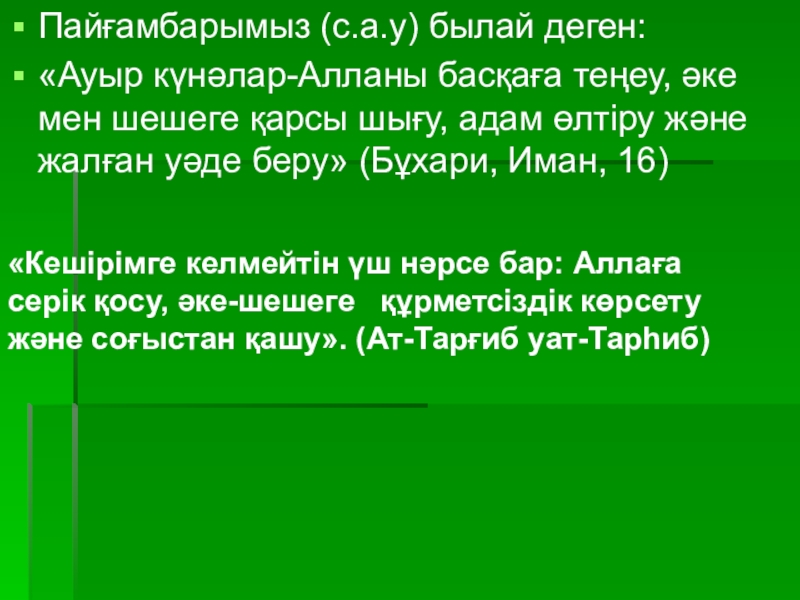 «Әке-шешеге қарсы шығу үлкен күнә болып табылады» (Бұхари)