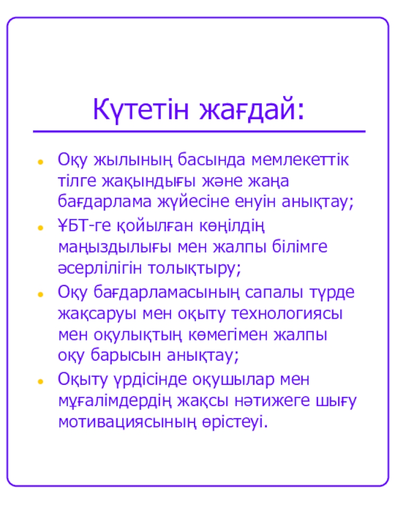 Оқу жылының басында мемлекеттік тілге жақындығы және жаңа бағдарлама жүйесіне