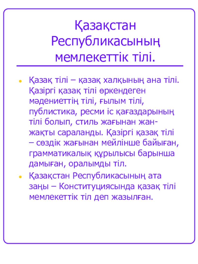Қазақ тілі – қазақ халқының ана тілі. Қазіргі
