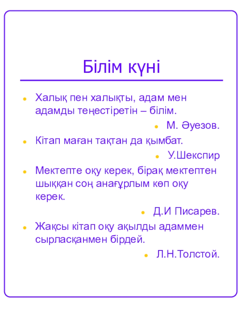 Халық пен халықты, адам мен адамды теңестіретін – білім.