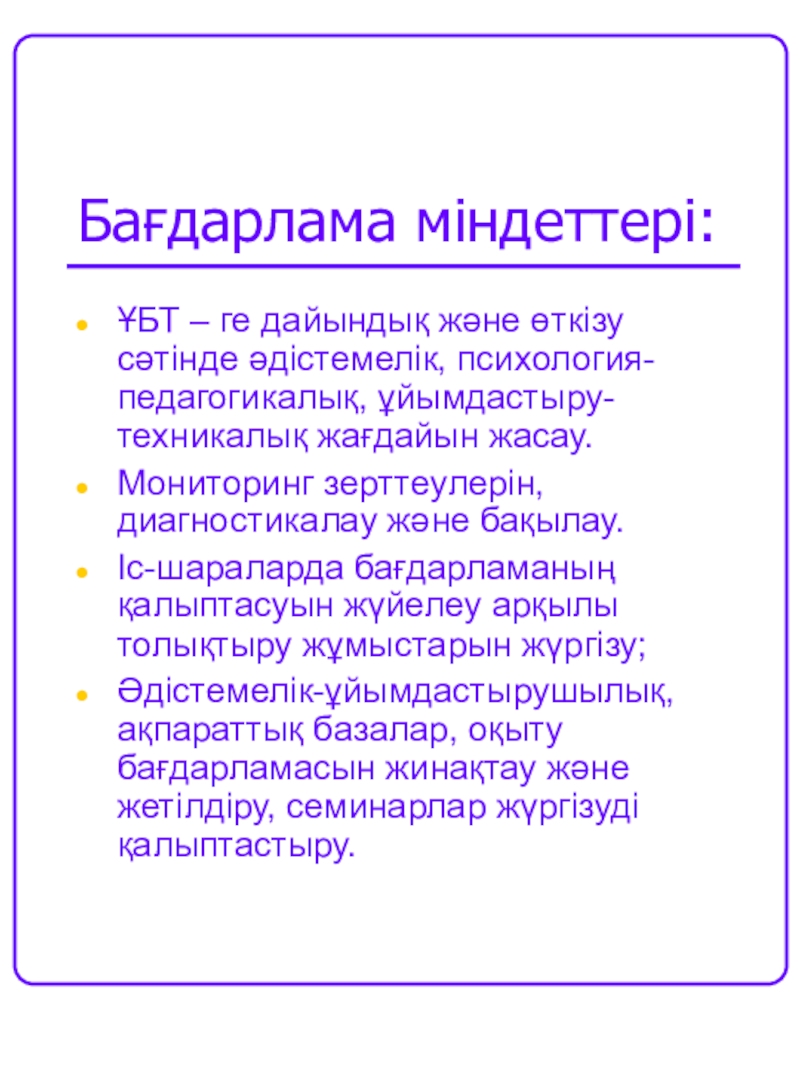 ҰБТ – ге дайындық және өткізу сәтінде әдістемелік, психология-педагогикалық, ұйымдастыру-техникалық