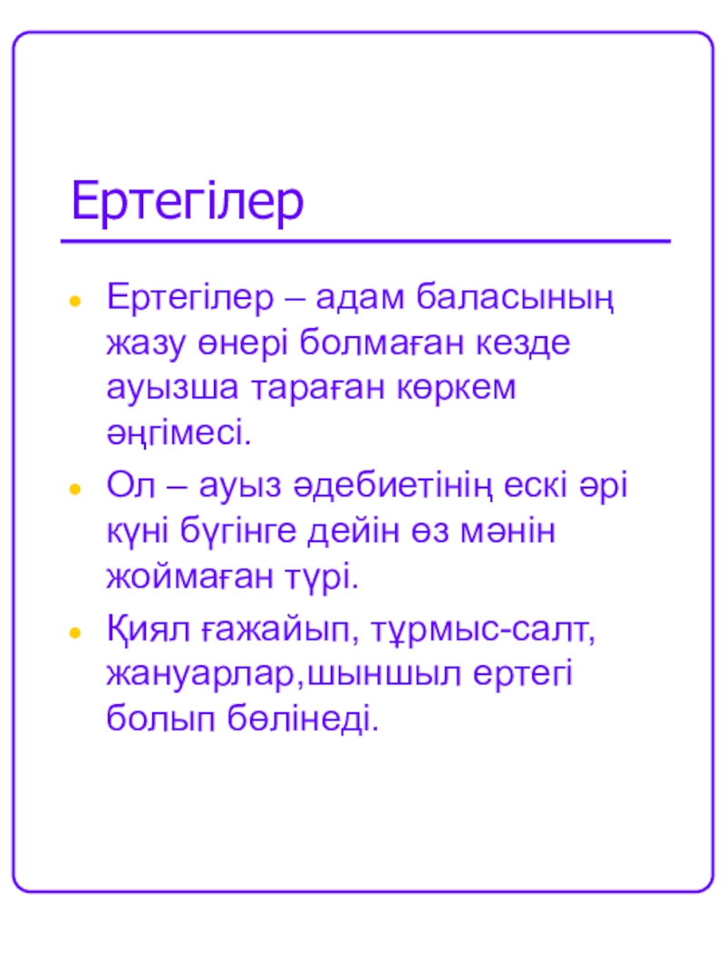 Ертегілер – адам баласының жазу өнері болмаған кезде ауызша тараған