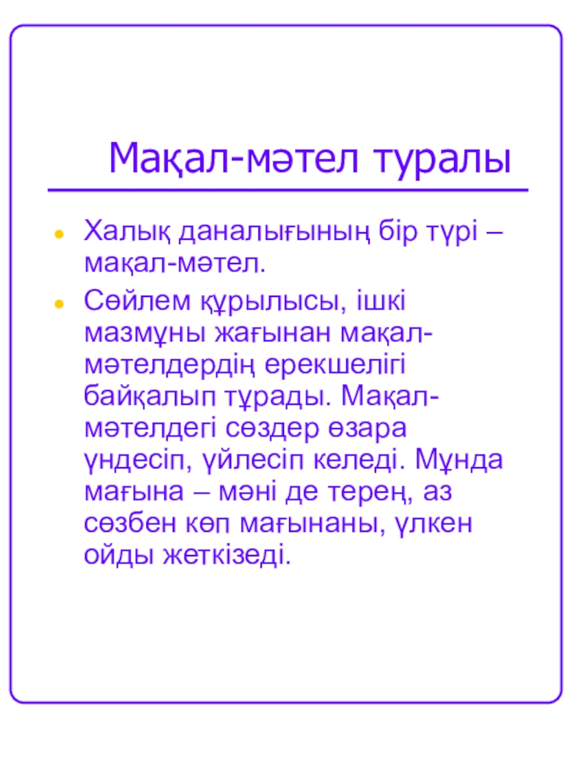 мен мақал-мәтелдер мағынасын түсіну қабілетін арттыру;