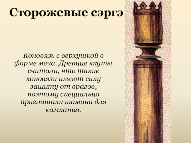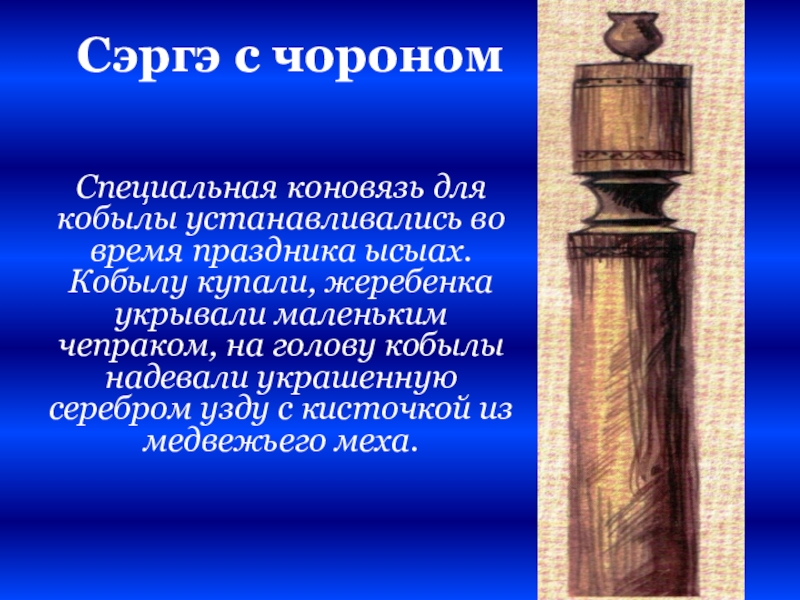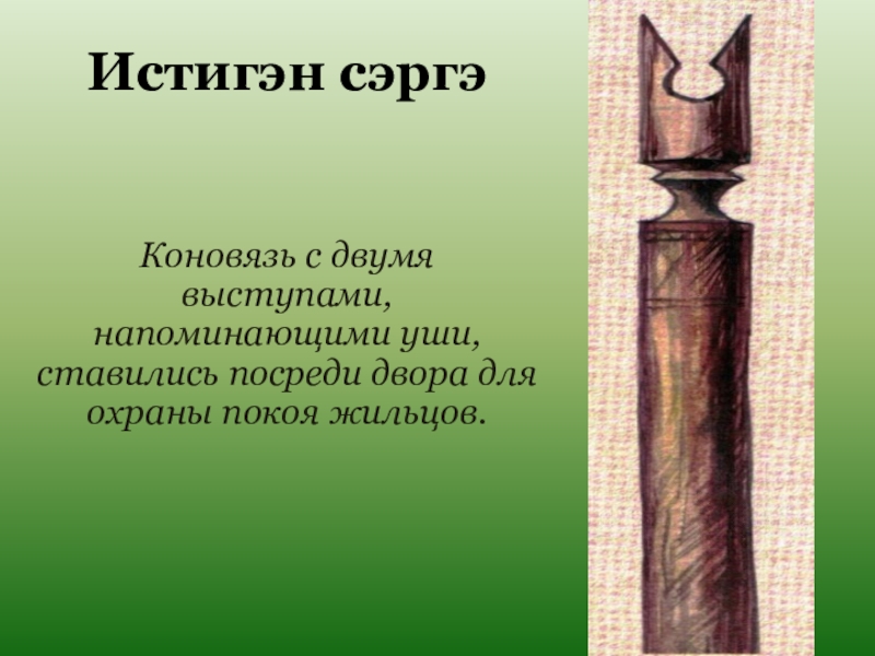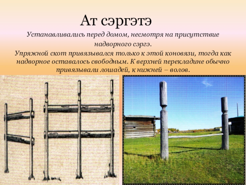 Слайд 2 Термин сэргэ это коновязный столб, состоящего обычно из круглого