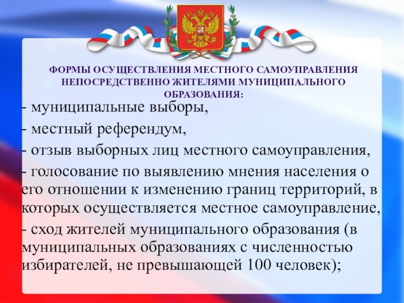 формы осуществления местного самоуправления непосредственно жителями муниципального образования: