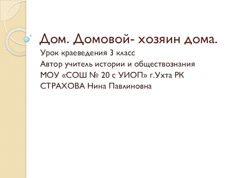 Дом. Домовой- хозяин дома.Урок краеведения 3 классАвтор учитель истории и обществознания МОУ «СОШ № 20 с УИОП»