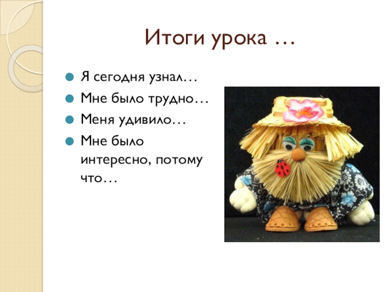 Итоги урока …Я сегодня узнал…Мне было трудно…Меня удивило…Мне было интересно, потому что…