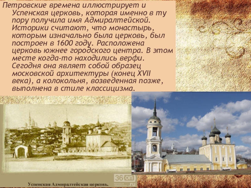 Петровские времена иллюстрирует и Успенская церковь, которая именно в ту пору