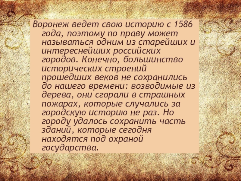 Слайд 2Воронеж ведет свою историю с 1586 года, поэтому по праву может
