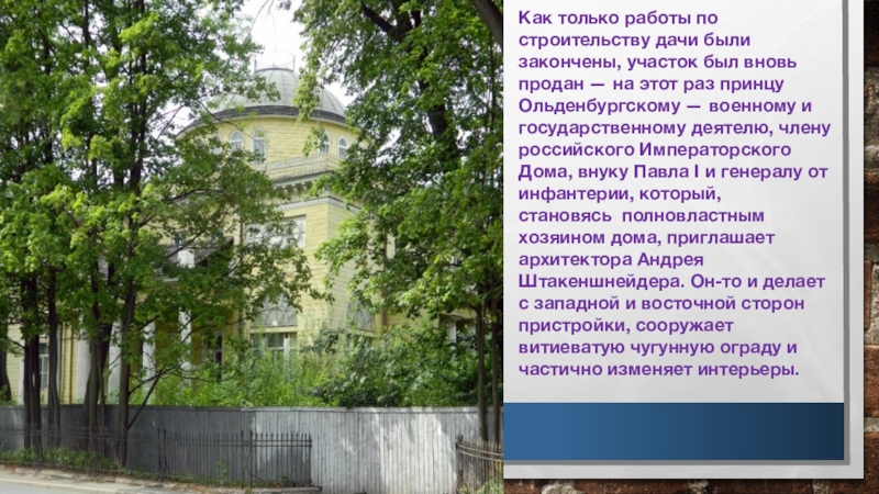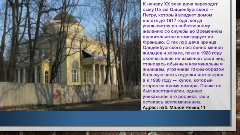 Слайд 19К началу XX века дача переходит сыну Петра Ольденбургского — Петру,