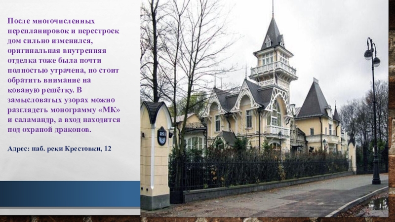 Слайд 3Особняк был построен в начале прошлого века, но не раз попадал