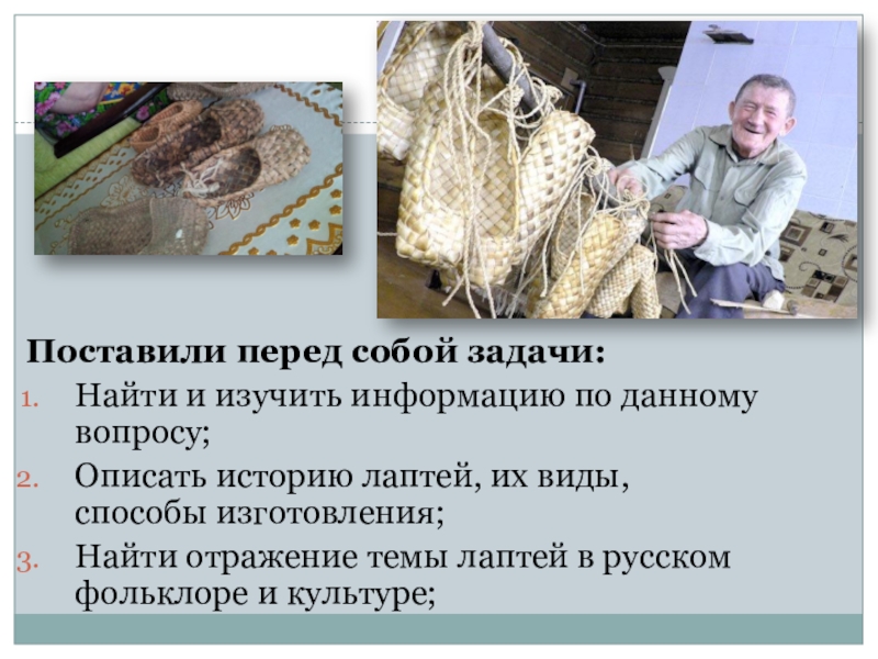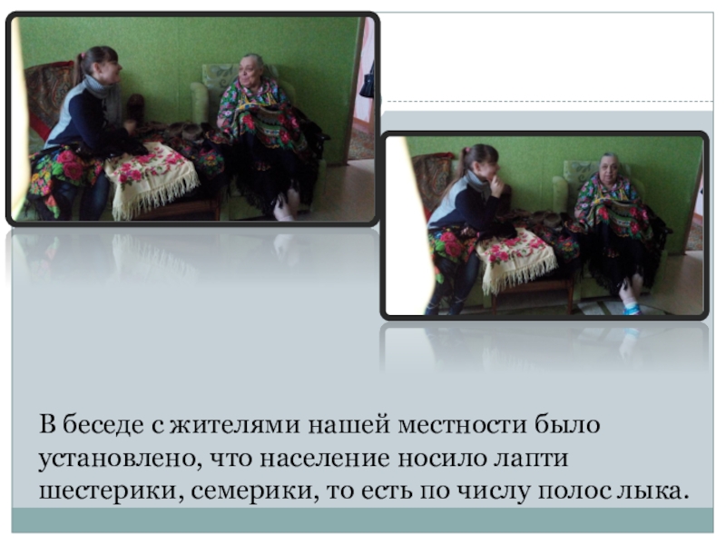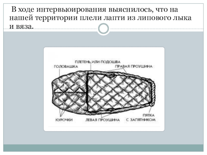 Слайд 14 В ходе интервьюирования выяснилось, что на нашей территории плели лапти