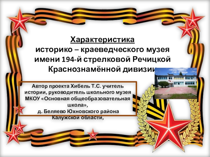 Автор проекта Хибель Т.С. учитель истории, руководитель школьного музея