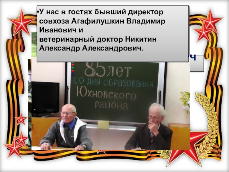У нас в гостях бывший директор совхоза Агафилушкин Владимир Иванович и ветеринарный доктор Никитин Александр Александрович.