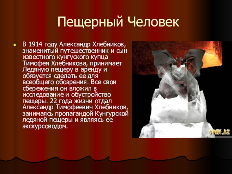 Кунгурская пещера – одна из крупнейших карстовых пещер России, является уникальным природным памятником. Кунгурская ледяная пещера является седьмой по протяженности в мире гипсовой пещерой. По определению исследователей, возраст пещеры составляет 10-12 тысяч лет. Ежегодно историко-культурный комплекс «Кунгурская ледяная пещера» (сама пещера, туристический комплекс «Сталагмит» и сувенирные лавки) посещают около 90 тысяч человек.