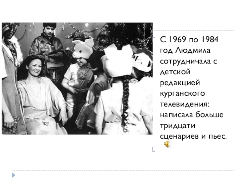 Слайд 6С 1969 по 1984 год Людмила сотрудничала с детской редакцией курганского