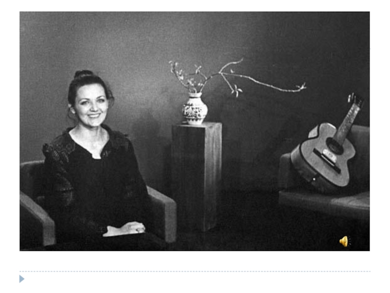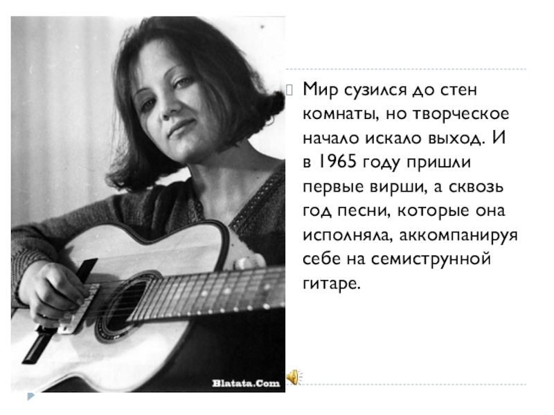 в 1965 году пришли первые вирши, а сквозь год песни, которые она исполняла, аккомпанируя себе на семиструнной гитаре.
