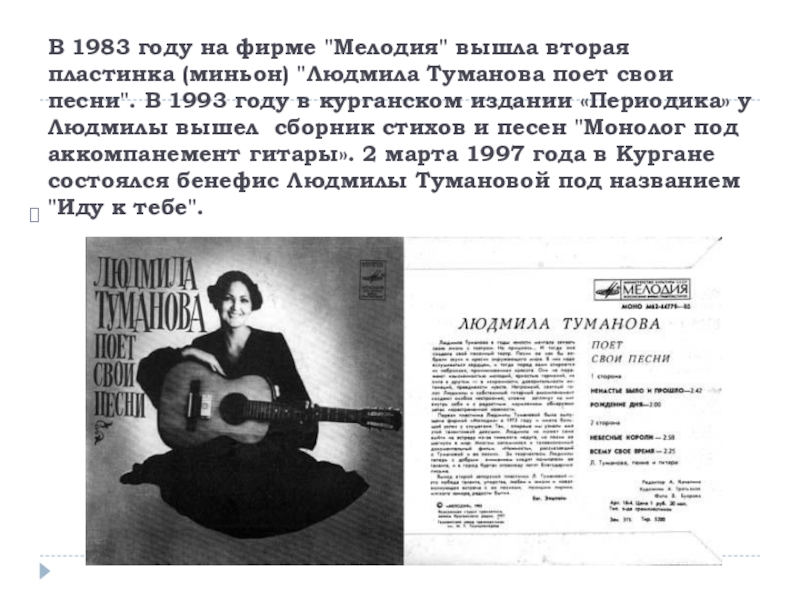 Слайд 9В 1983 году на фирме "Мелодия" вышла вторая пластинка (миньон) "Людмила