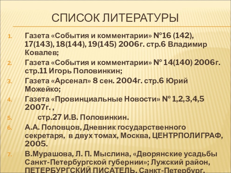 Слайд 45СПИСОК ЛИТЕРАТУРЫ