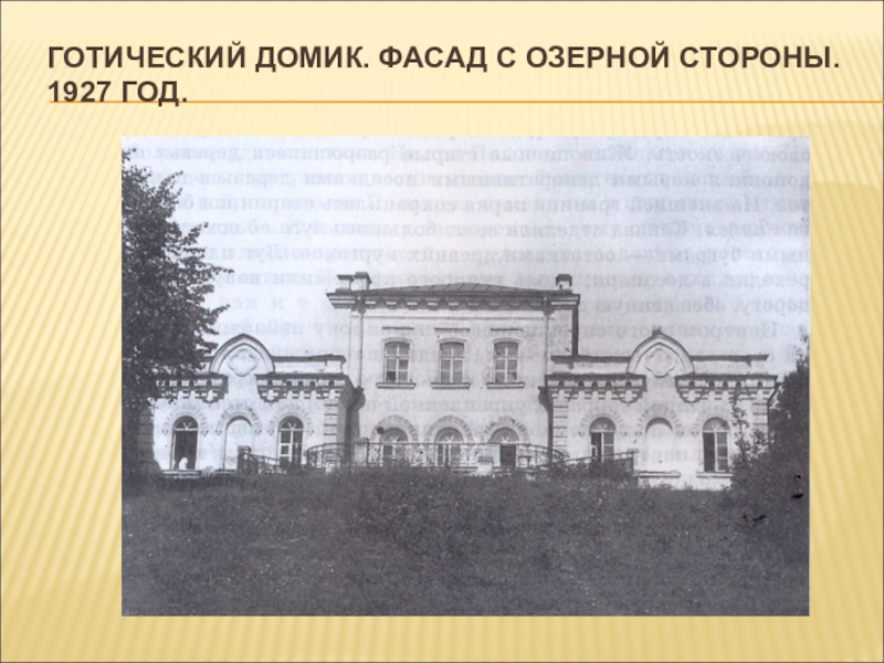 Слайд 21ГОТИЧЕСКИЙ ДОМИК. ФАСАД С ОЗЕРНОЙ СТОРОНЫ. 1927 ГОД.