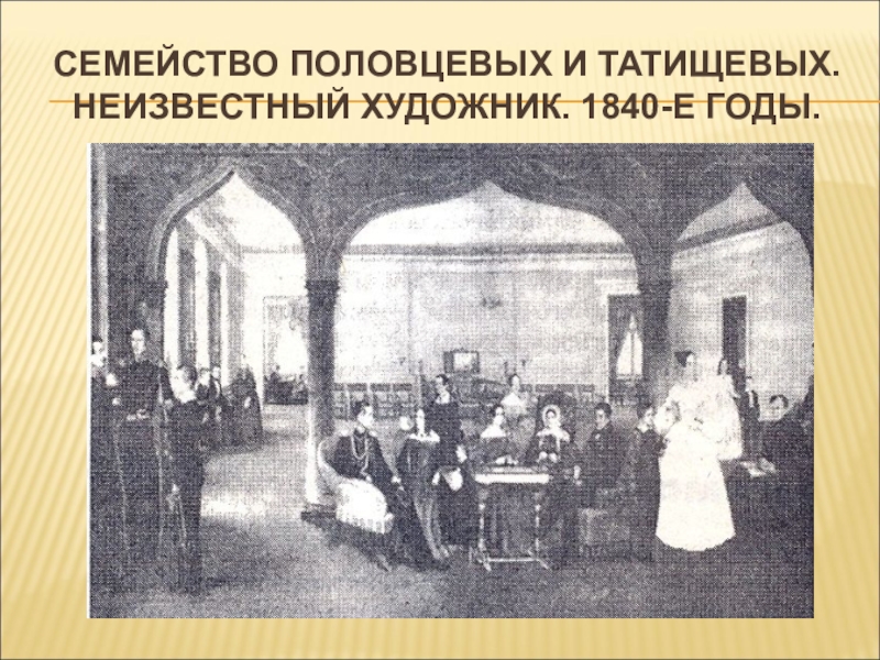 Слайд 20СЕМЕЙСТВО ПОЛОВЦЕВЫХ И ТАТИЩЕВЫХ. НЕИЗВЕСТНЫЙ ХУДОЖНИК. 1840-Е ГОДЫ.