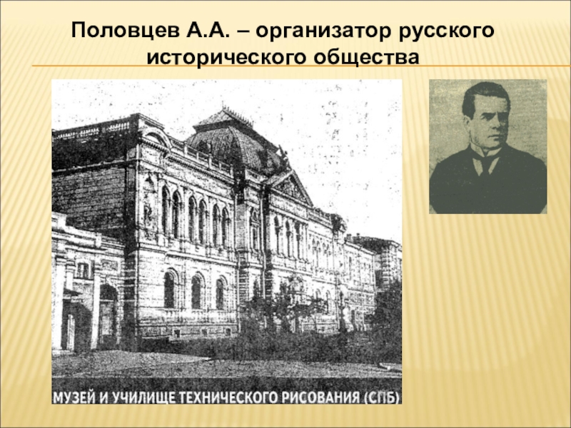 Слайд 40Половцев А.А. – организатор русского исторического общества