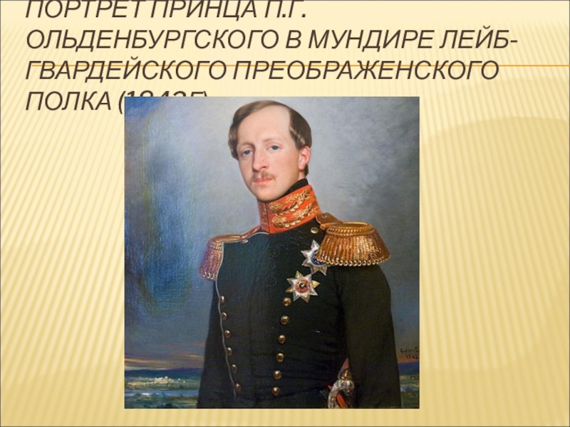 Слайд 7ПОРТРЕТ ПРИНЦА П.Г. ОЛЬДЕНБУРГСКОГО В МУНДИРЕ ЛЕЙБ-ГВАРДЕЙСКОГО ПРЕОБРАЖЕНСКОГО ПОЛКА (1842Г)