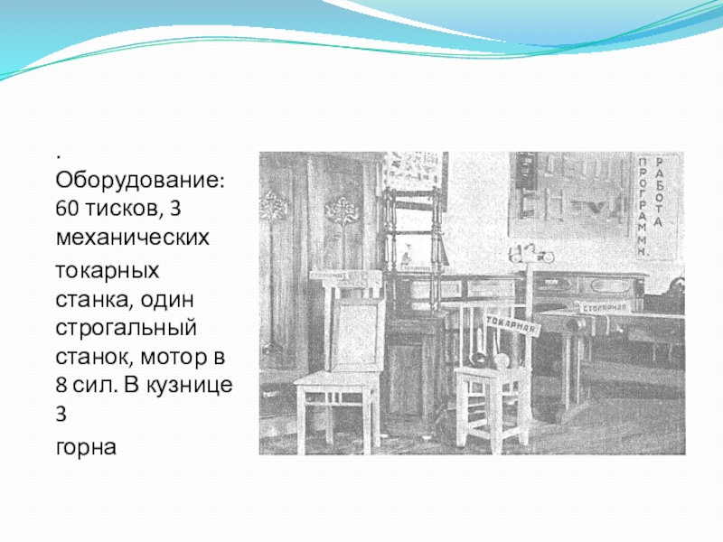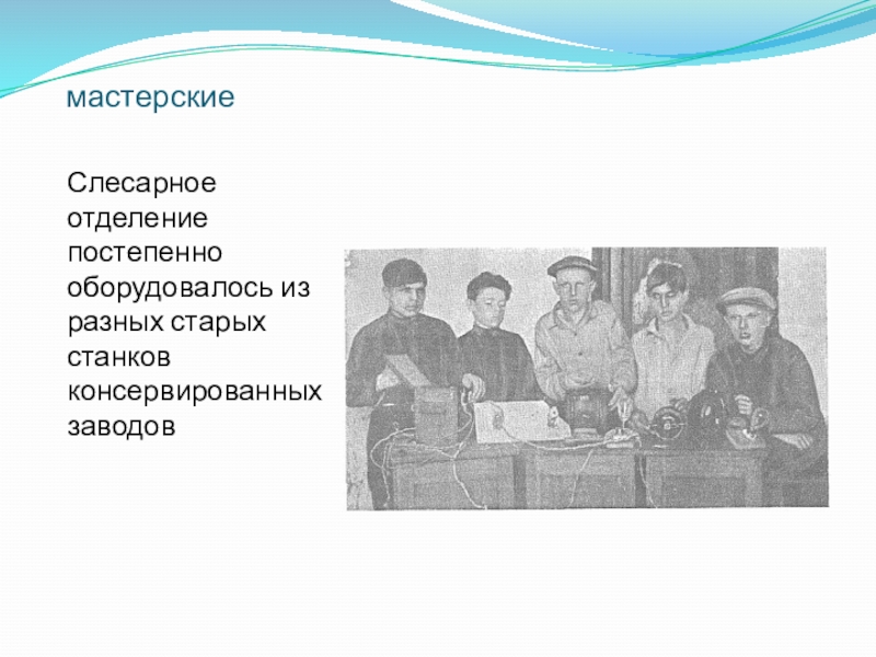 Слесарное отделение постепенно оборудовалось из разных старых станков консервированных заводов