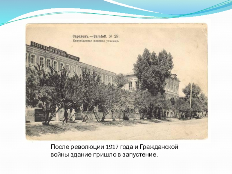 Слайд 7После революции 1917 года и Гражданской войны здание пришло в запустение.