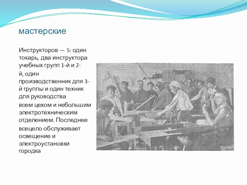 Инструкторов — 5: один токарь, два инструктора учебных групп 1-й и