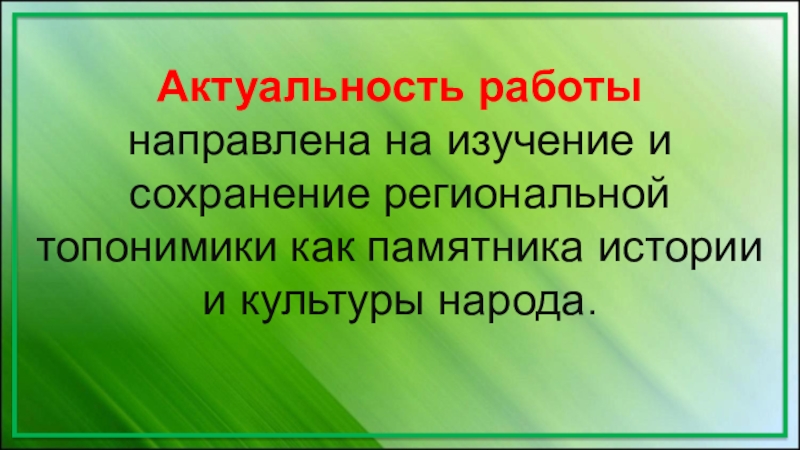 направлена на изучение и сохранение региональной топонимики как памятника истории
