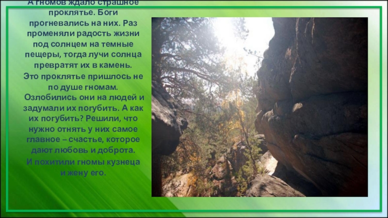 Слайд 14А гномов ждало страшное проклятье. Боги прогневались на них. Раз променяли