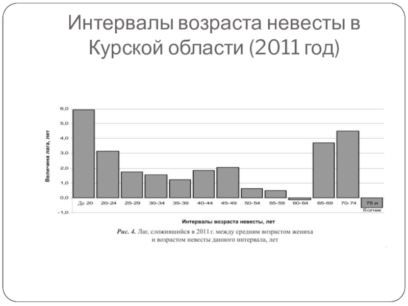 Слайд 9Интервалы возраста невесты в Курской области (2011 год)