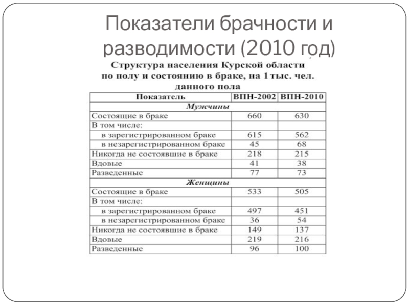 Слайд 5Показатели брачности и разводимости (2010 год)