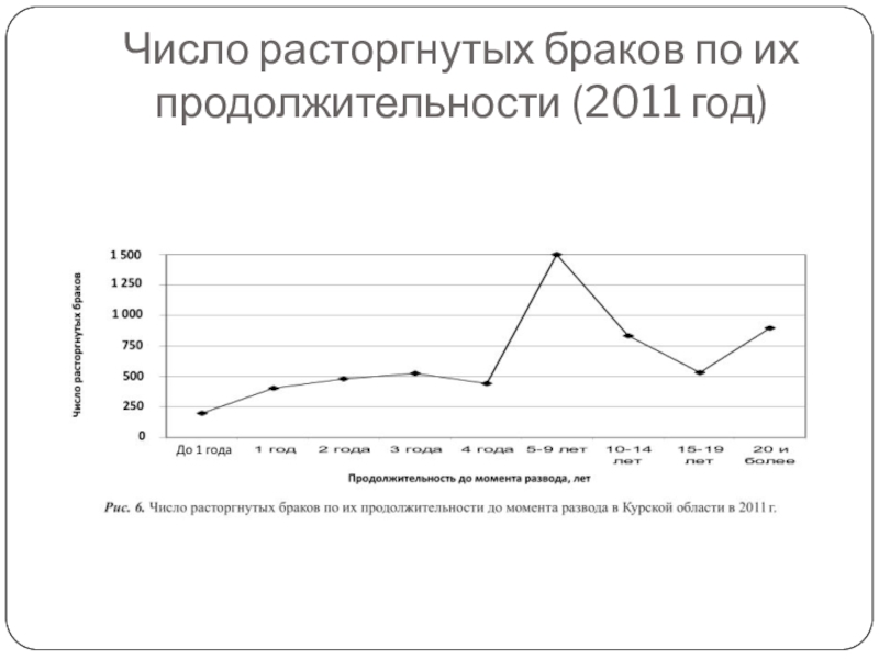 Слайд 11Число расторгнутых браков по их продолжительности (2011 год)