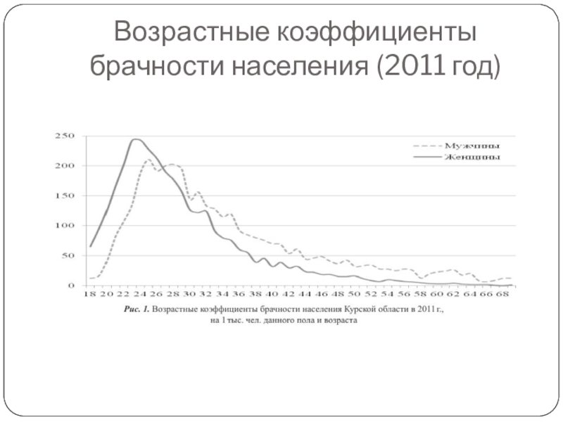 Слайд 8Возрастные коэффициенты брачности населения (2011 год)