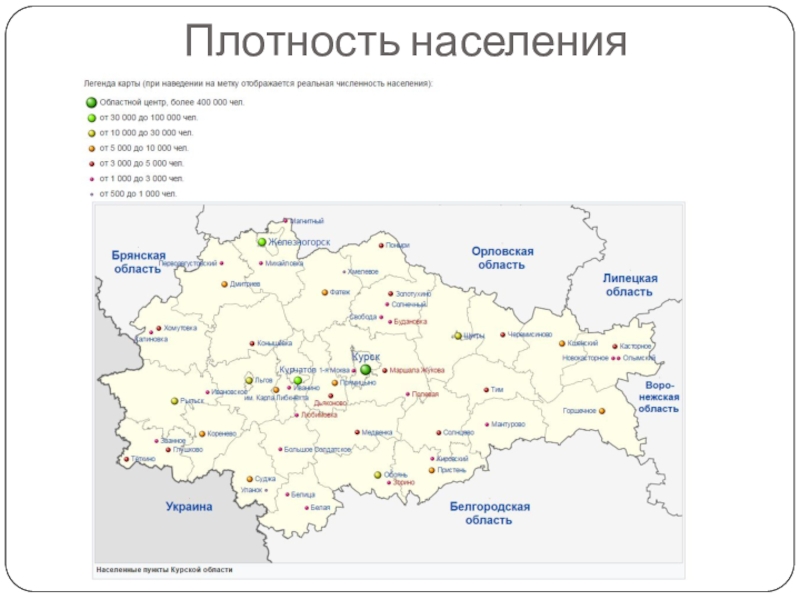 Презентация, доклад по краеведению на тему Количественные показатели Курской области (8 класс)