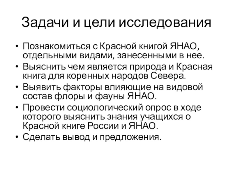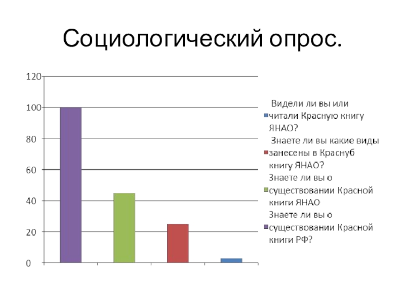 Провести социологический опрос в ходе которого выяснить знания учащихся о Красной книге России и ЯНАО.
