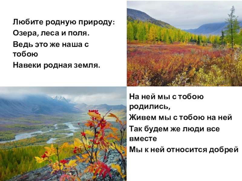 Без надобности не руби дерево , кустарник ,не ломай ветки , не рви цветы , не топчи тундру.