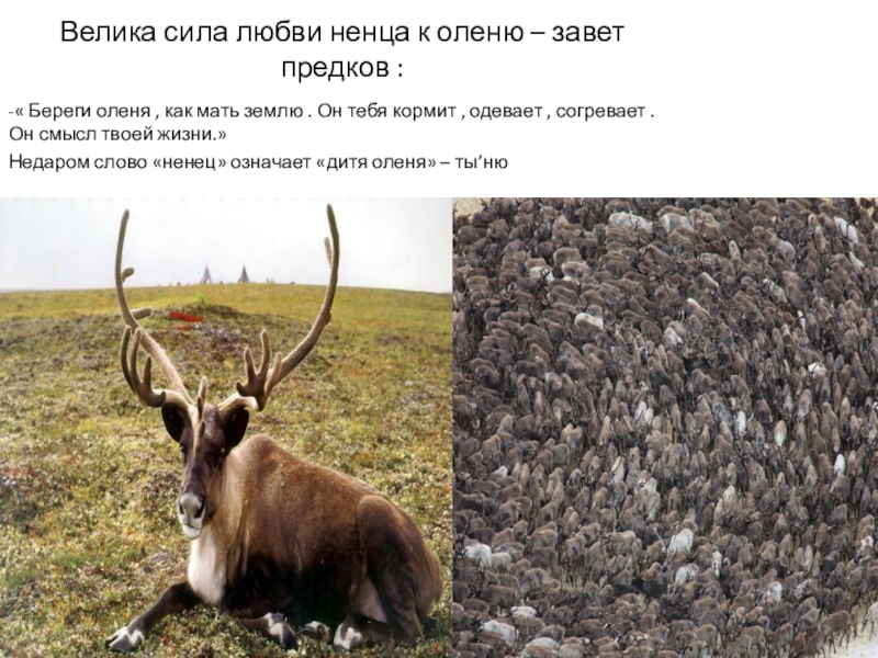 Слайд 17Велика сила любви ненца к оленю – завет предков :