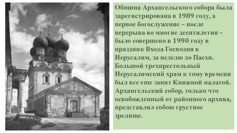 Слайд 15Община Архангельского собора была зарегистрирована в 1989 году, а первое богослужение