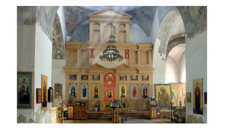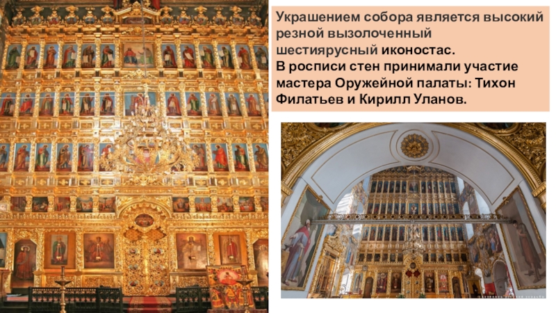 Слайд 19Украшением собора является высокий резной вызолоченный шестиярусный иконостас.