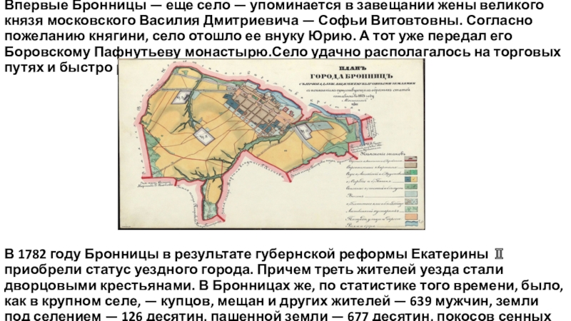 Слайд 3Впервые Бронницы — еще село — упоминается в завещании жены великого