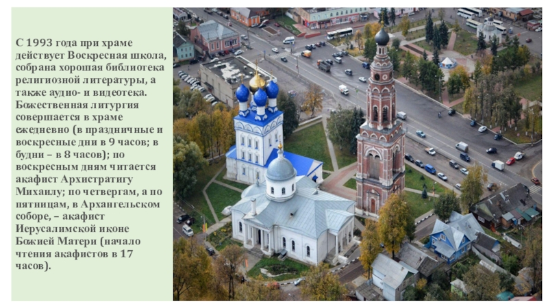 Слайд 25С 1993 года при храме действует Воскресная школа, собрана хорошая библиотека