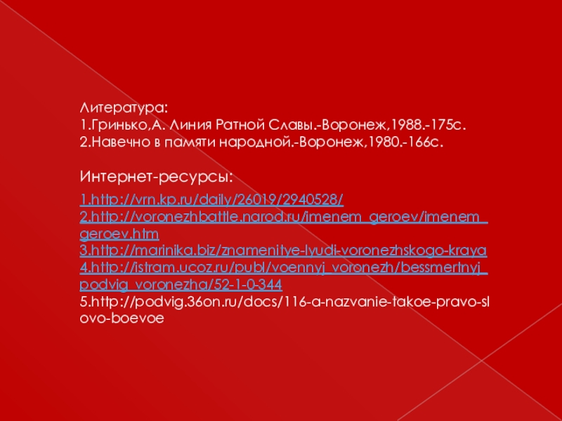 1.Гринько,А. Линия Ратной Славы.-Воронеж,1988.-175с.