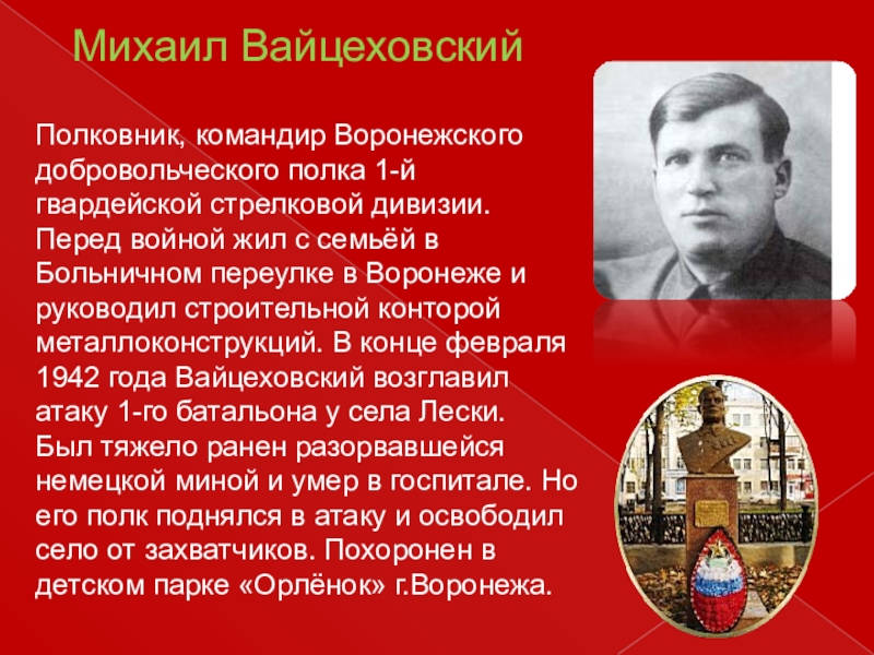 Полковник, командир Воронежского добровольческого полка 1-й гвардейской стрелковой дивизии.