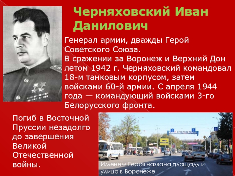 В сражении за Воронеж и Верхний Дон летом 1942 г. Черняховский командовал 18-м танковым корпусом, затем