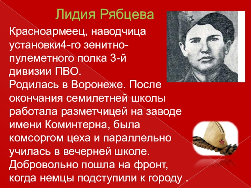 Красноармеец, наводчица установки4-го зенитно-