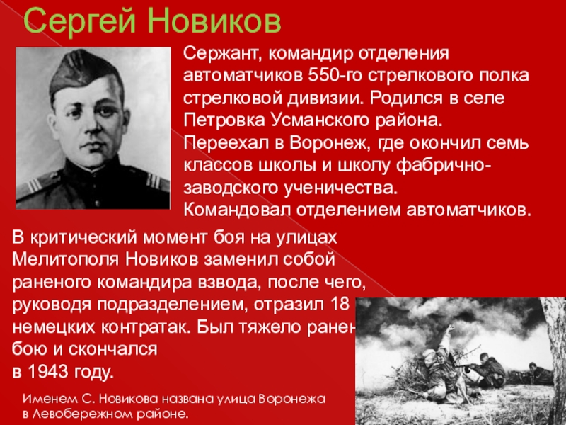 Именем С. Новикова названа улица Воронежа