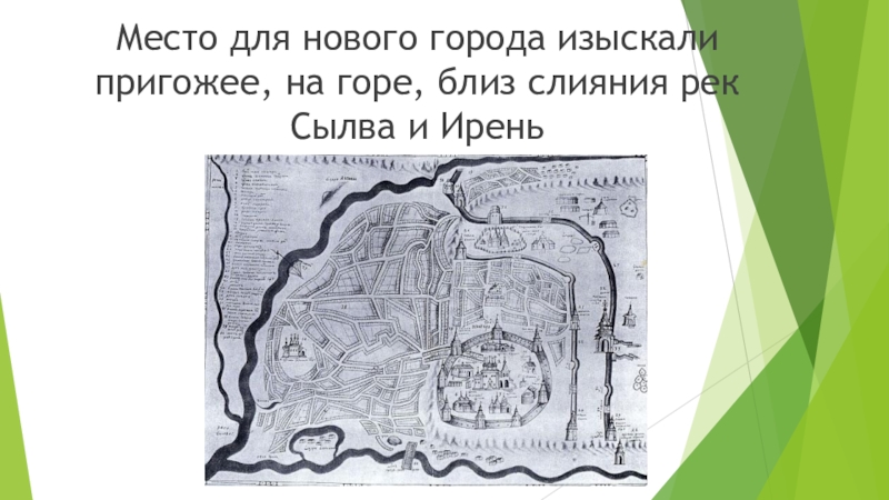 Слайд 8Место для нового города изыскали пригожее, на горе, близ слияния рек